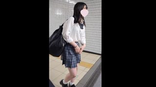 [ねんいち動画] めっかわ美巨乳JKがリュックでスカート捲れてフロントお披露目!<JKパンチラ盗撮>