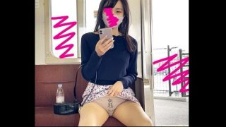[ヘタレ動画] (電車対面)撮影バレ!露出パンチラ→巨乳谷間見せ→その後手招きされ・・・<盗撮>
